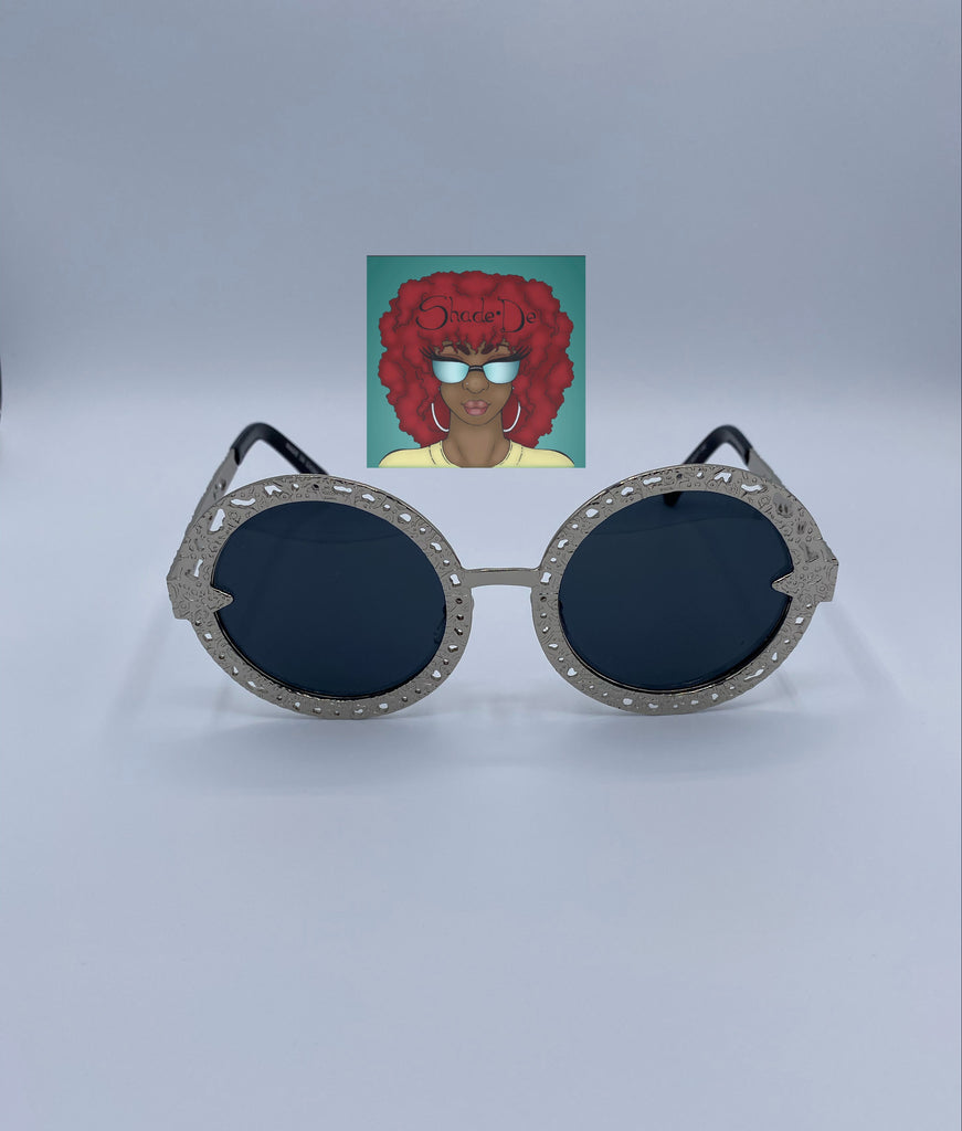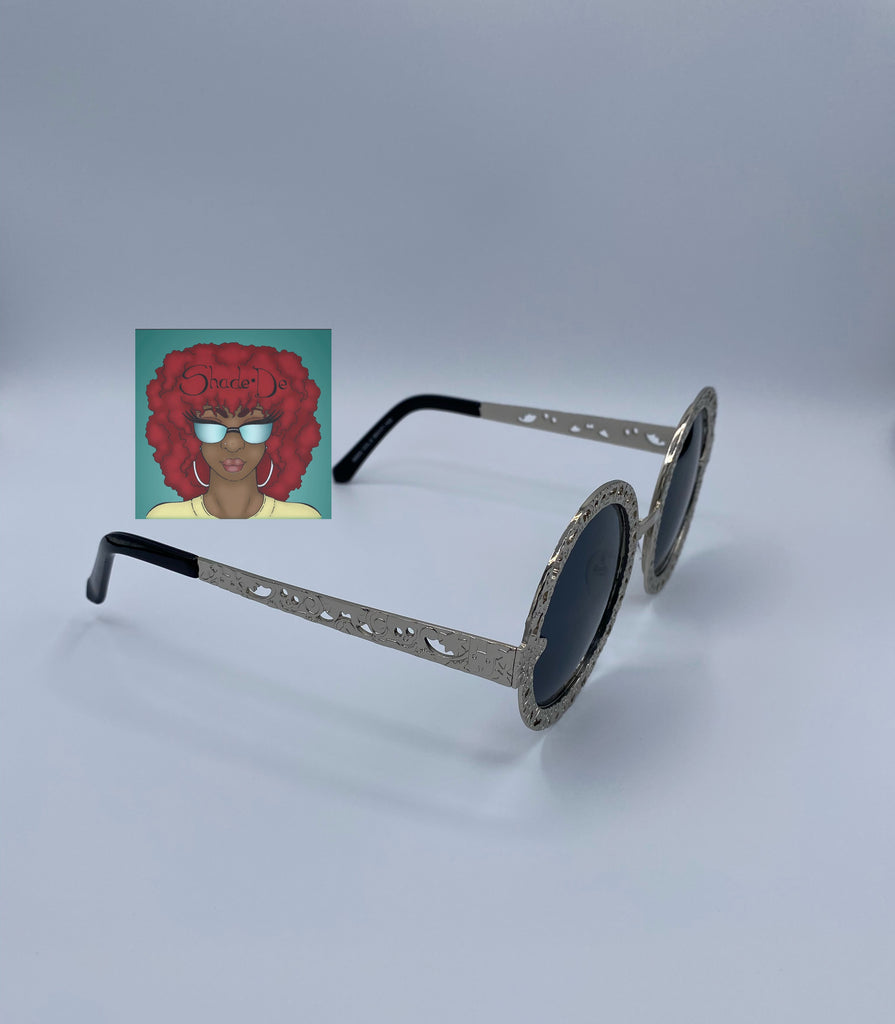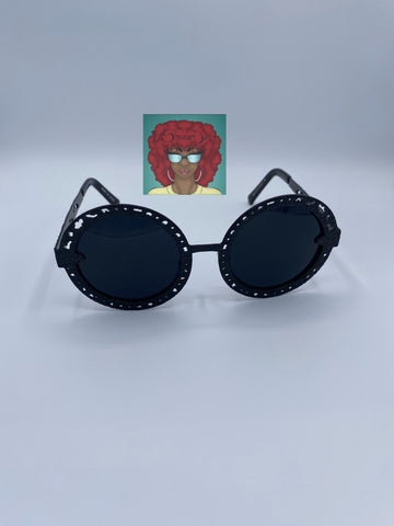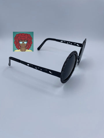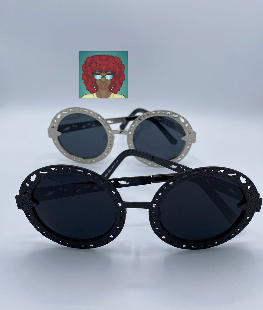 Round embroidered metal frames.
